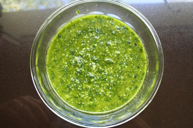 Add the remaining half olive oil slowly until you get your own preferred consistency. This depends on how big a bunch of Basil you actually have.