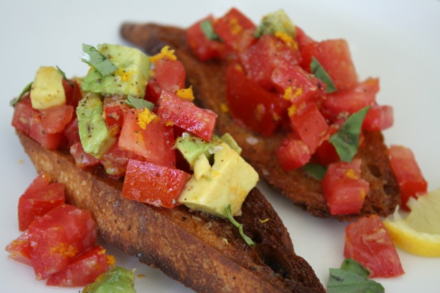 Note: When you dice the tomatoes ,the peach, and the avocado try to dice them all the same size.