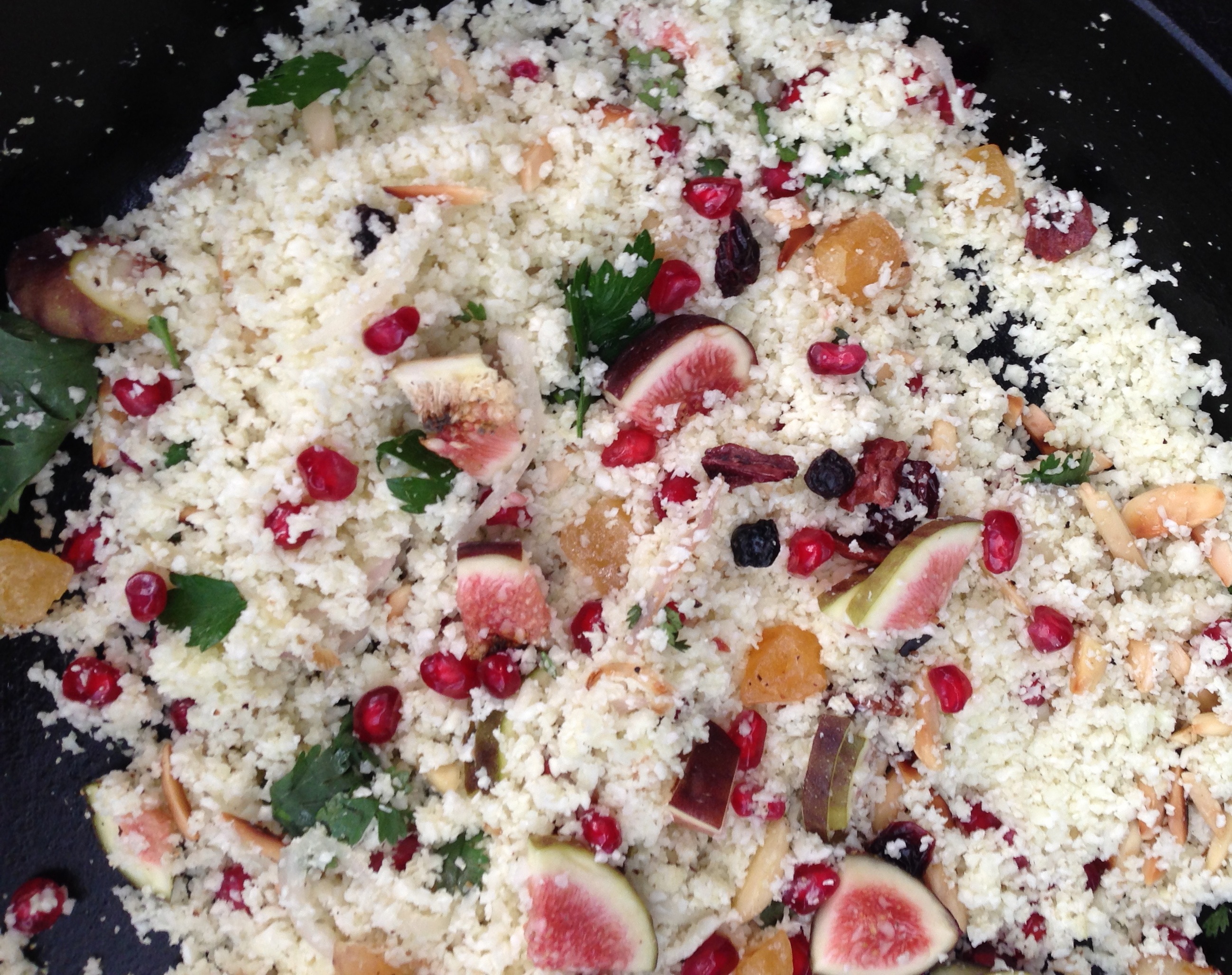 1 large head Cauliflower-blitz in the food processor fit with blade attachment (or grate with a hand grater until vegetable resembles wet sand)