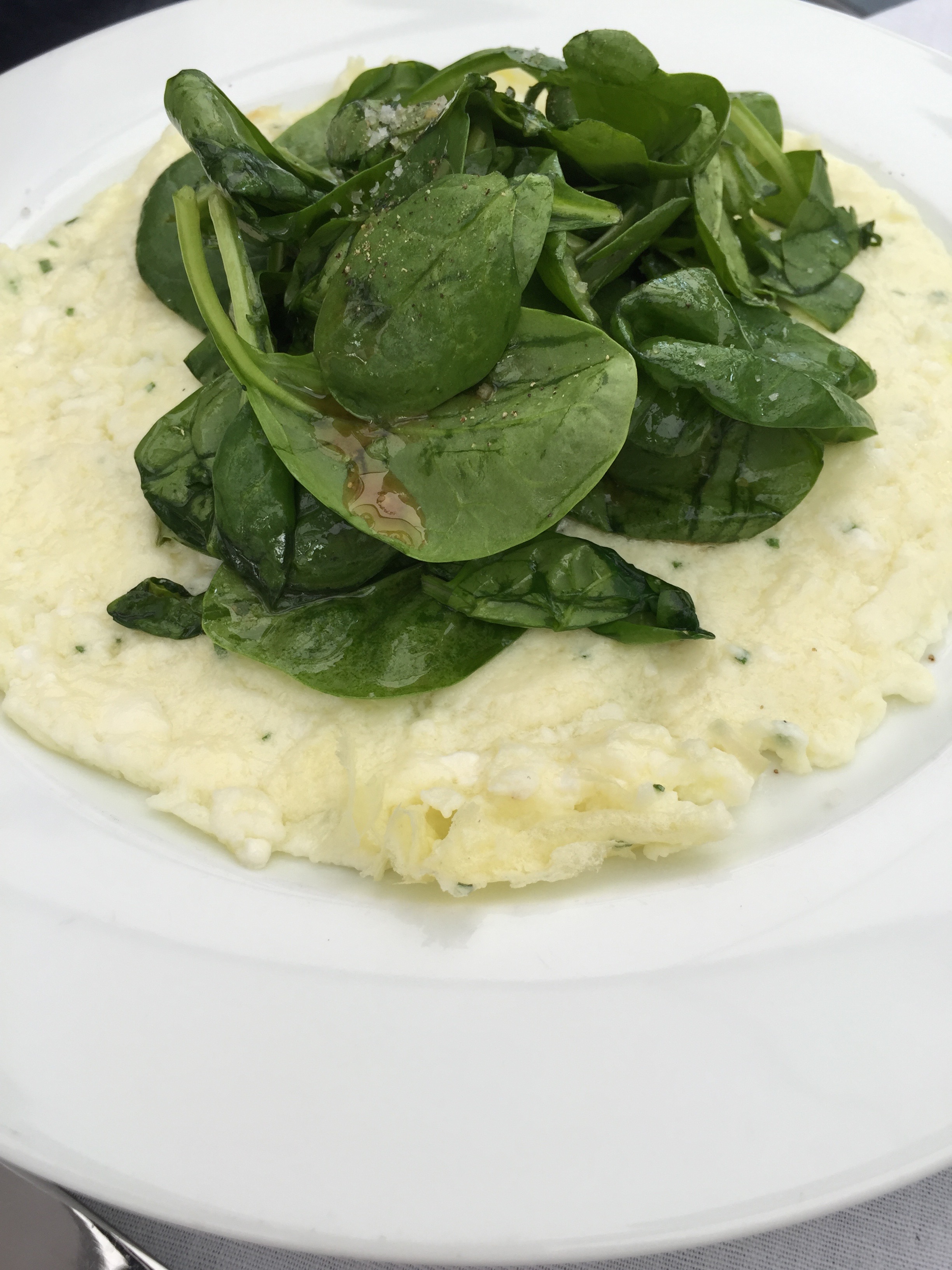 Slide omelette onto plate and top with spinach salad.