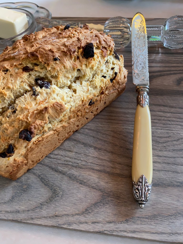 1cup chopped Dried Cherries or traditionally Currants are used- toss with one tablepoon of flour so fruits dont settle at the bottom of the cake during baking.
